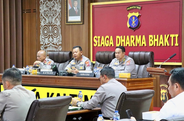 Kapolda Kaltim Irjen Pol Endar Priantoro memimpin langsung rapat Analisa dan Evaluasi (Anev) yang diikuti seluruh pejabat utama dan Kapolres jajaran.