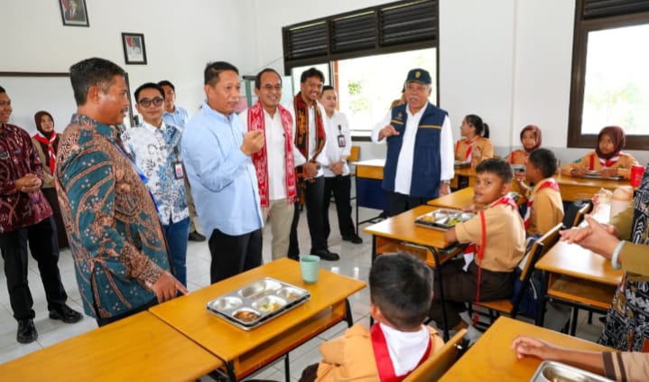 Selain meninjau sekolah, rombongan juga mengunjungi dapur produksi dan kantor SPPG di Desa Bumi Harapan untuk memastikan rantai penyediaan makanan bergizi berjalan optimal dan higienis.
