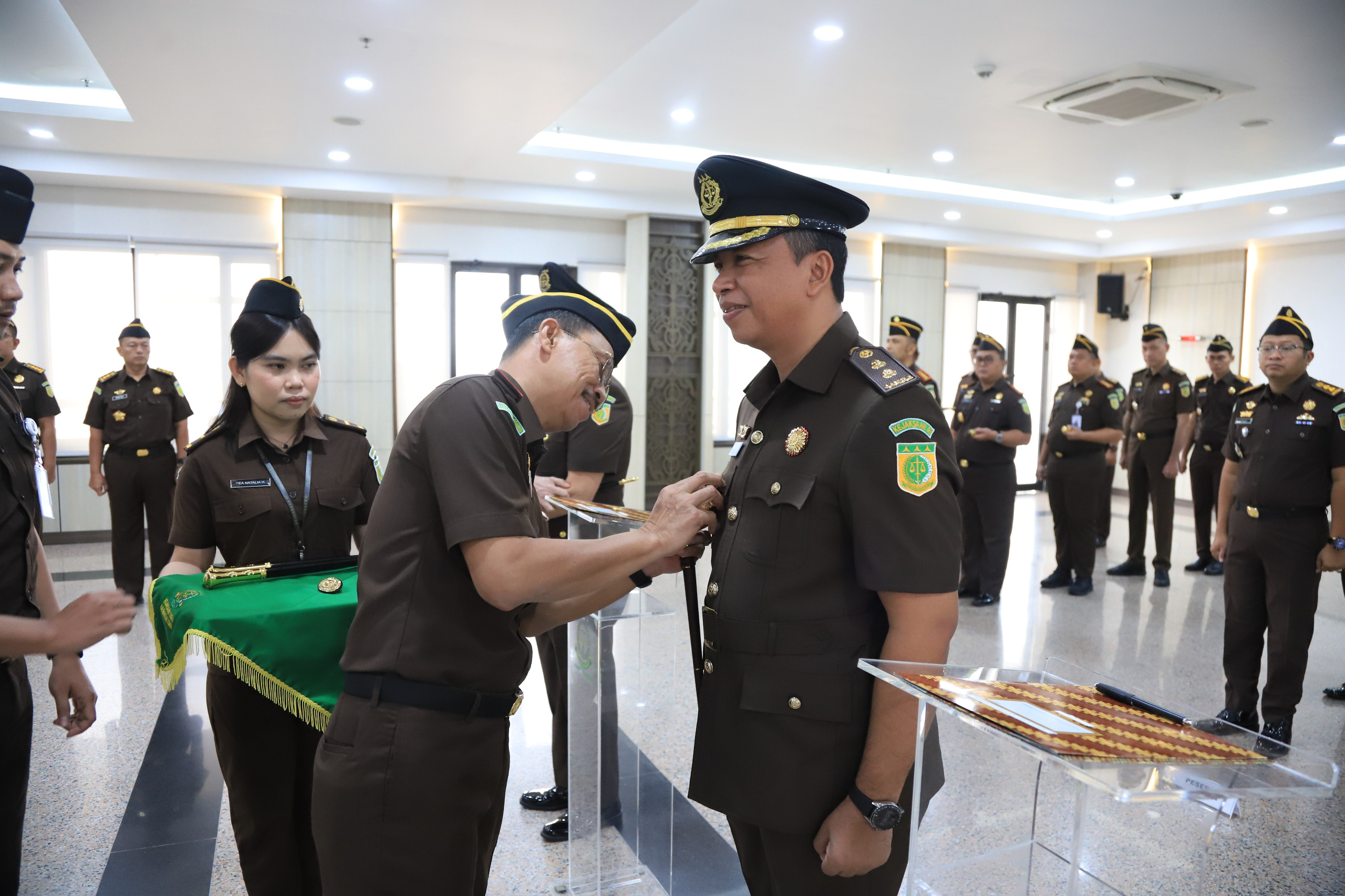 Prosesi pelantikan berlangsung di Aula Kejati Kaltim dan diikuti jajaran pimpinan serta pegawai di lingkungan Kejaksaan.